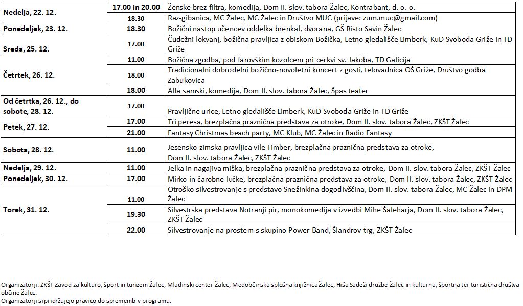 - Obiskovalce bo razveselil tudi Miklavžev večer v Galiciji in Pernovem ter tradicionalni božično-novoletni koncert na OŠ Griže.