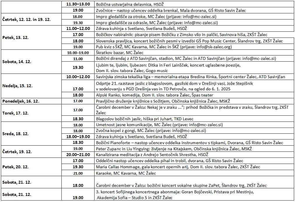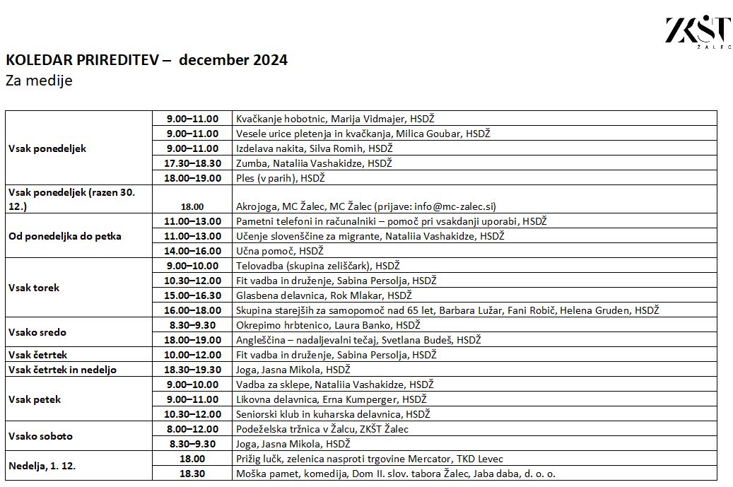 Dogajanje v občini Žalec v decembru 2024